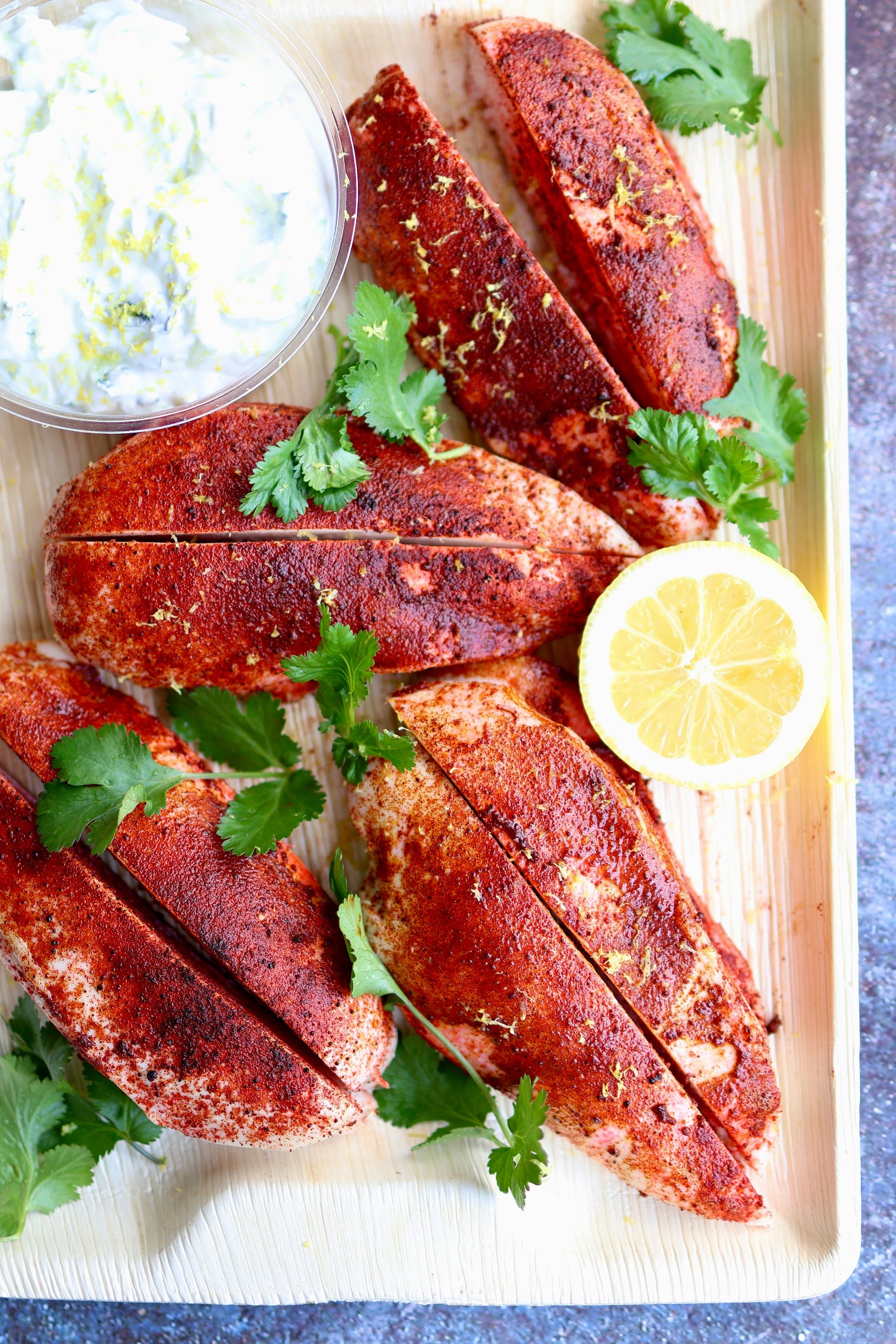 Steamed Chicken Breast with Tandoori Spices, Raita, Lemon & Coriander Cress